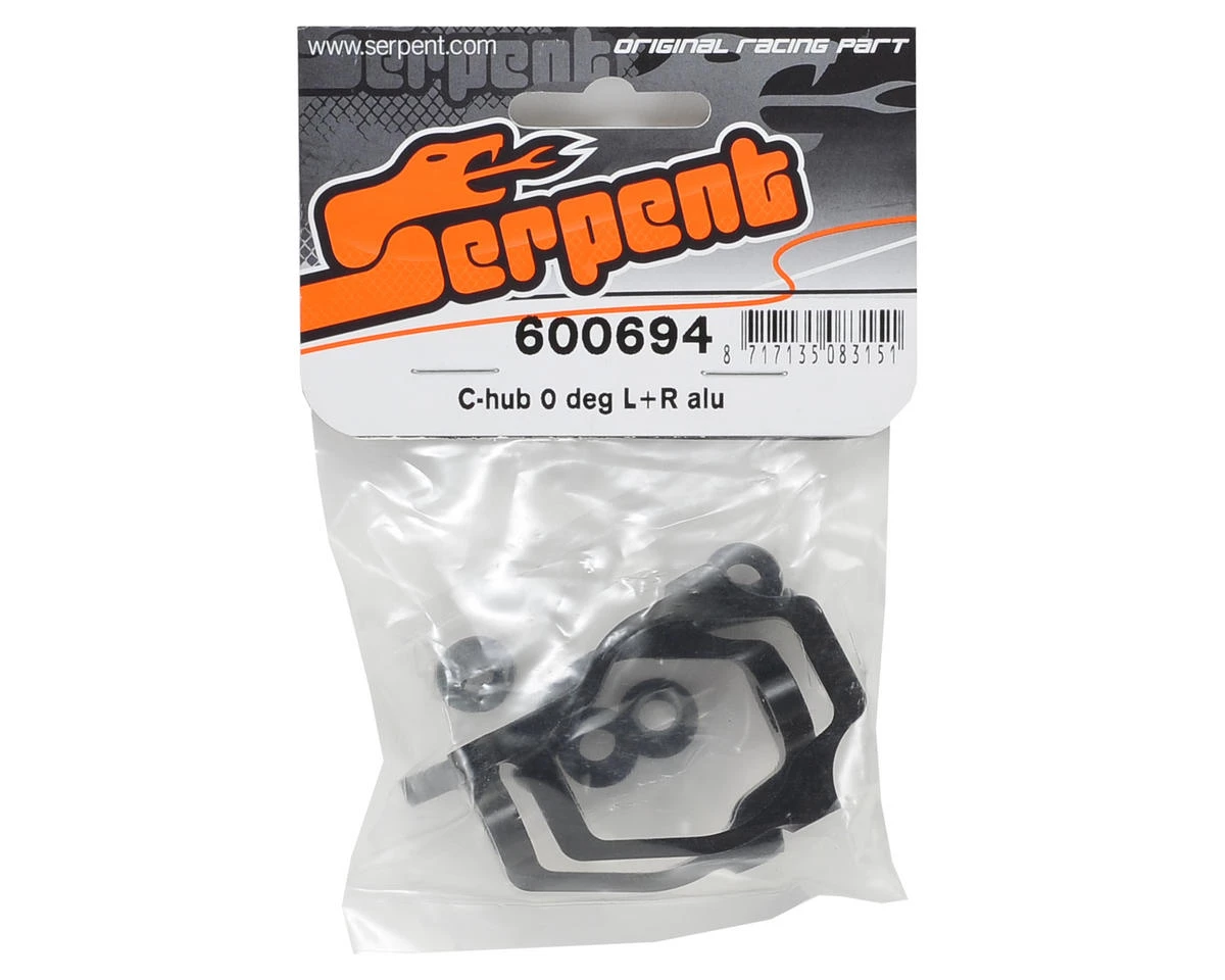 This is a pack of two optional Serpent 0° Aluminum C-Hubs. For the 1/8 Cobra line of cars Serpent introduces these 0-degree aluminum c-hubs. These are designed to be used mainly for the Cobra GT and Cobra GTe 1/8 4wd GT cars. Machined from 7075 T6 aluminium and black anodised, these are a direct replacement for the standard composite versions.