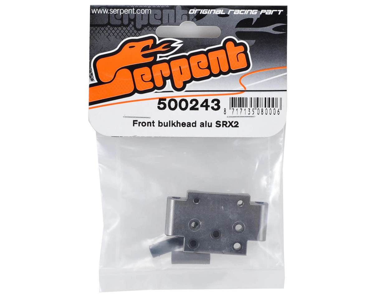 This is an optional Serpent Aluminum Front Bulkhead. This lightweight aluminum bulkhead includes 20°, 25° and 30° composite inserts to change the overall caster angle of the front wheels, allowing the user to fine-tune the steering characteristics of the buggy. Package includes the aluminum bulkhead and a pack of six bulkhead inserts.
