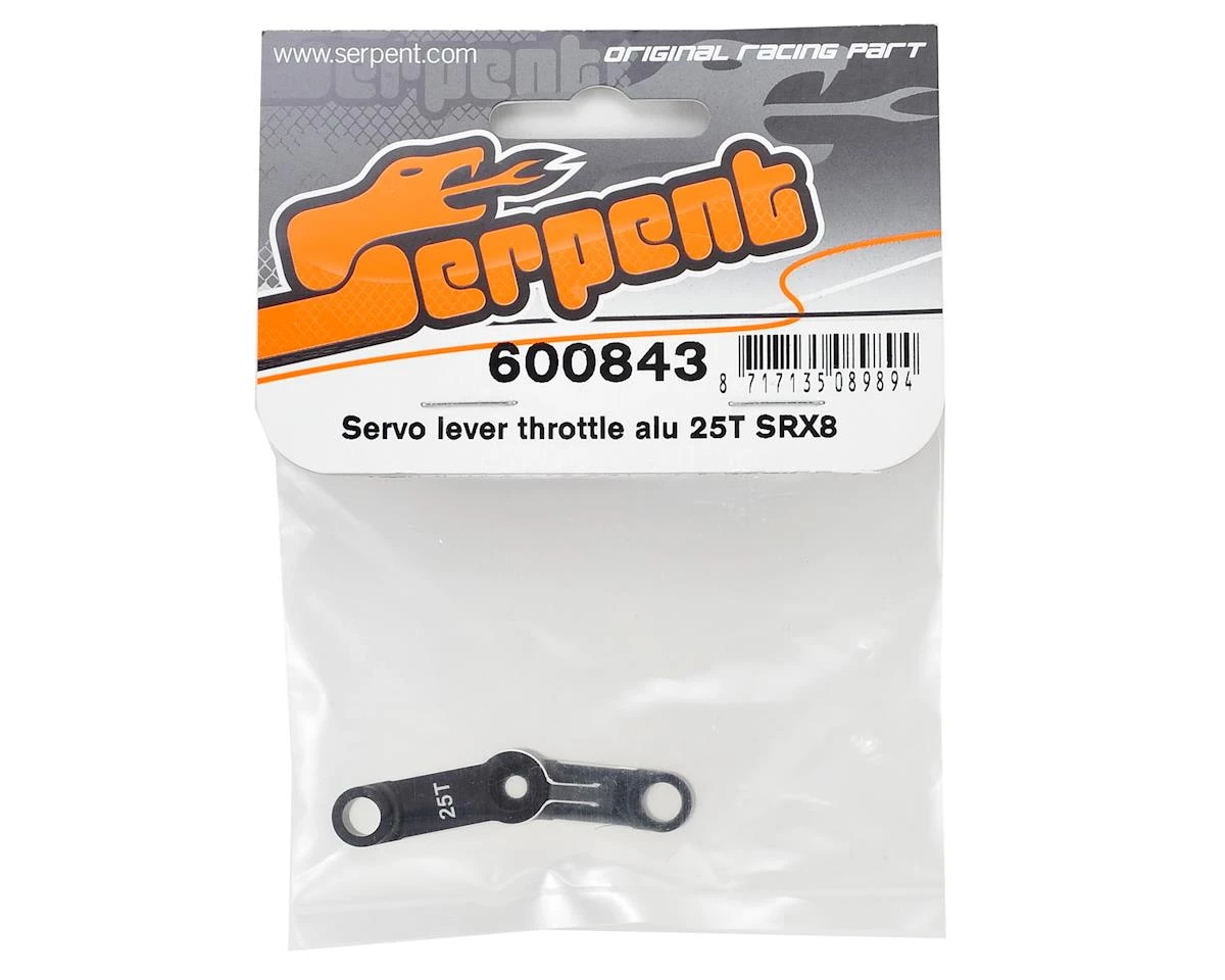 This is an optional 25 tooth Serpent Aluminum SRX8 Throttle Servo Horn, compatible with 25 Tooth spline servos; such as ProTek R/C, Savox and Futaba.