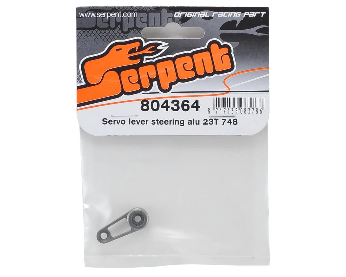 This is a replacement Serpent Aluminum Steering Servo Lever. This servo horn will work with any 23 tooth spline servo, such as KO, JR and Sanwa/Airtronics.