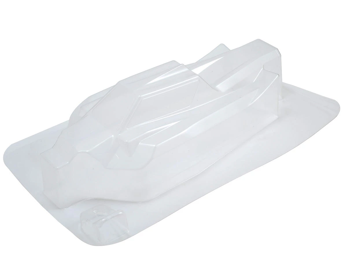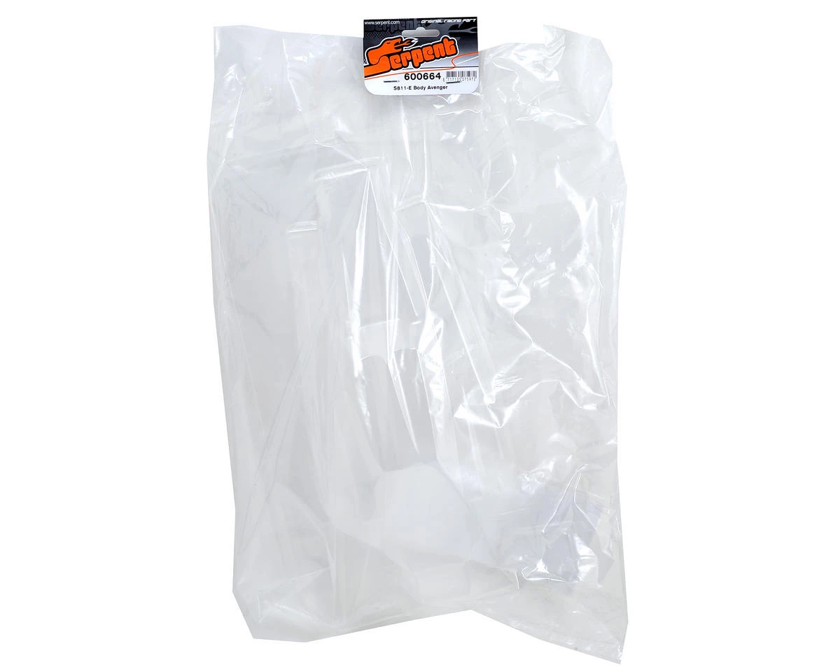 This is the Serpent Avenger 811e Body. The Avenger body is a cab forward design that delivers improved steering, downforce and jump feel compared to the original e-Cobra body. The steeper frontal section will give more steering, and the cuts across the roof will add straight line stability and and improved cornering. The smooth rear section behind the cab will guide air to the low rear wing better. Teh body is molded from high quality 1mm light polycarbonate and has a protective film on the outside to protect it during storage and painting. Includes window masks.