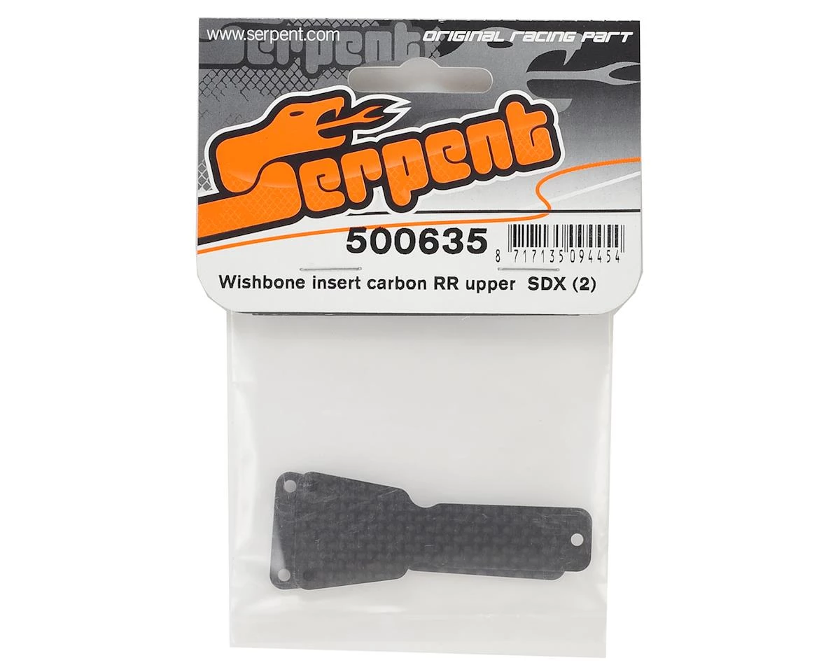 This is a pack of two optional Serpent Carbon SDX4 Rear Upper A-Arm Inserts.