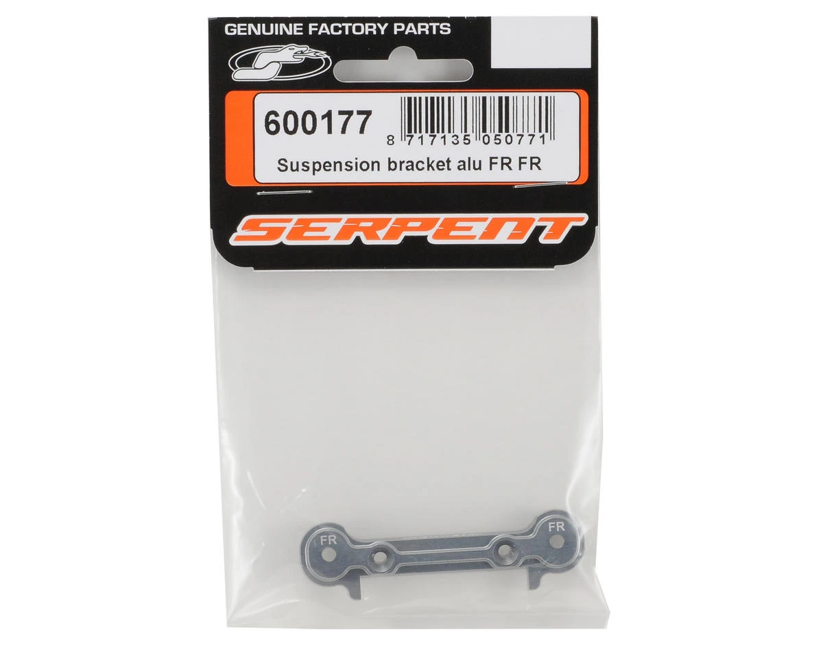This is a replacement Serpent Front Outer Suspension Bracket, and isintended for use with the Serpent S811 Cobra 1/8 buggy. This CNCmachined suspension bracket is strong, durable and light weight. Thebracket design allows the geometry to be tuned with the use of a varietyof different eccentric inserts.