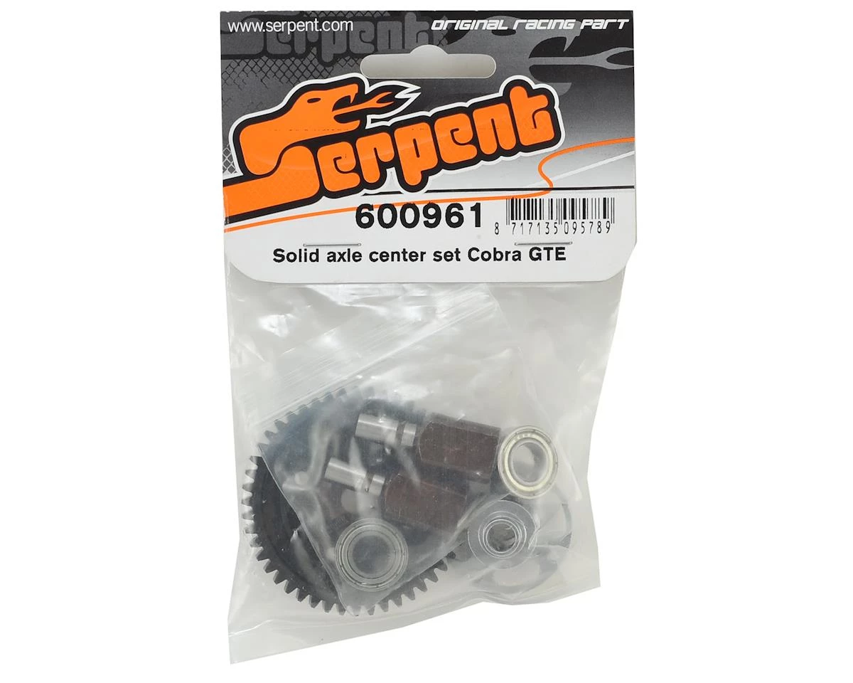 This is an optional Serpent GT-E Center Solid Axle Set. For the Serpent Cobra 1/8 GT-E is this center solid axle as alternative for the center gear differential. In the GT-E class drivers need to use very hard center diffs with 1 or even 2 mln oil. The solid center axle will increase acceleration and improve braking. Lighter, simpler.