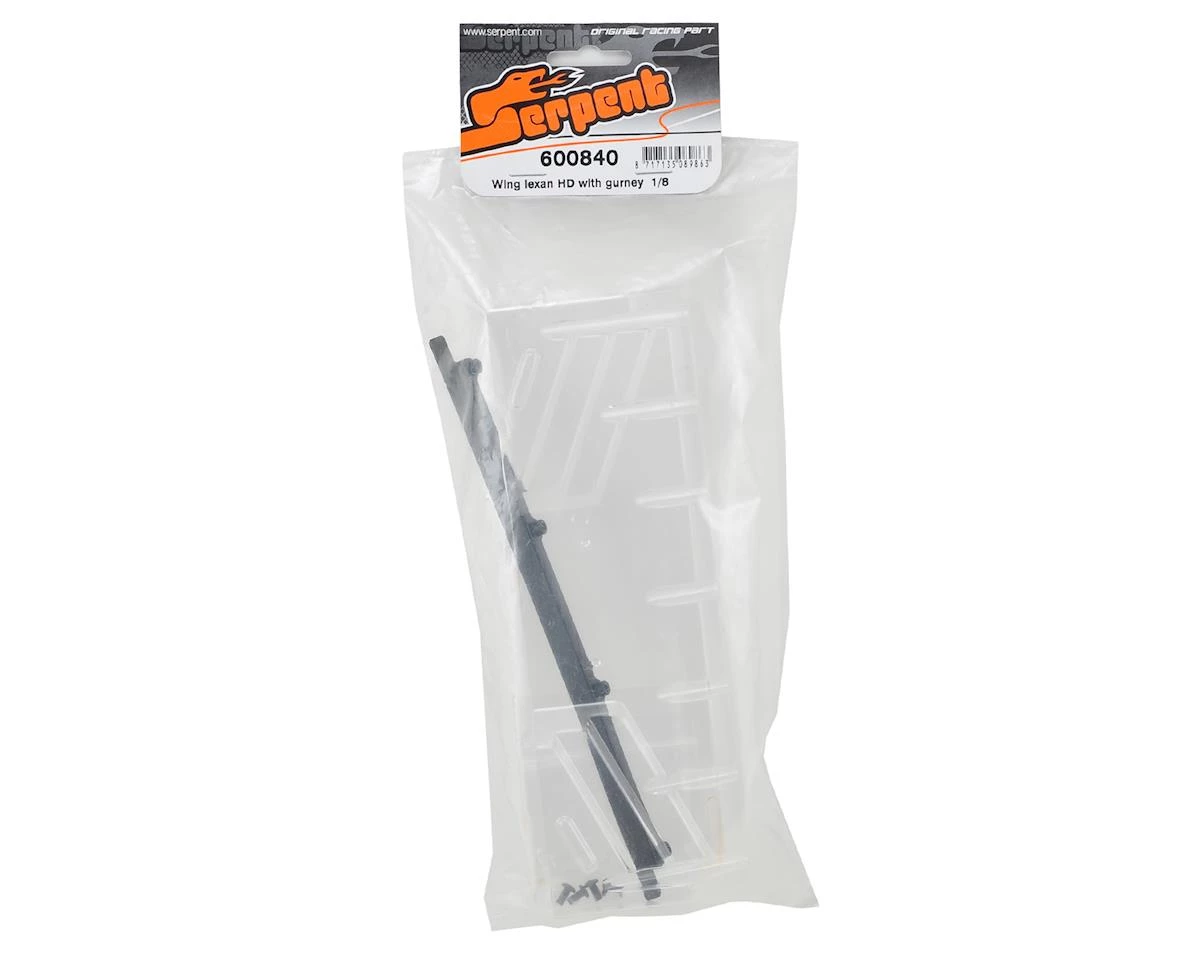 Serpent Lexan HD 1/8 Buggy Wing. Package includes pre-cut wing, gurney flap, center dam plate and hardware.