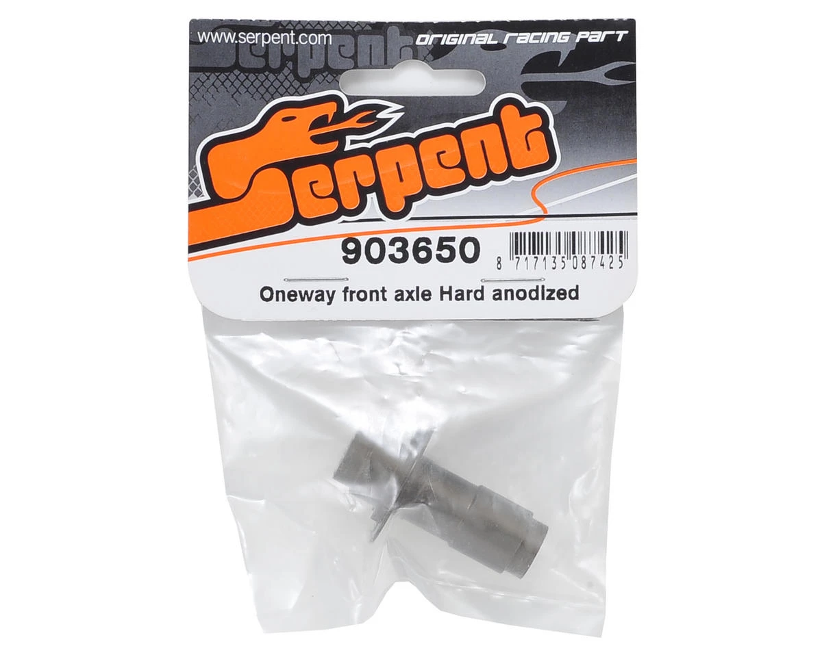 This Serpent One Way Front Axle is compatible with the 977 series models and features a hard anodized finish combined with German one way bearings.
