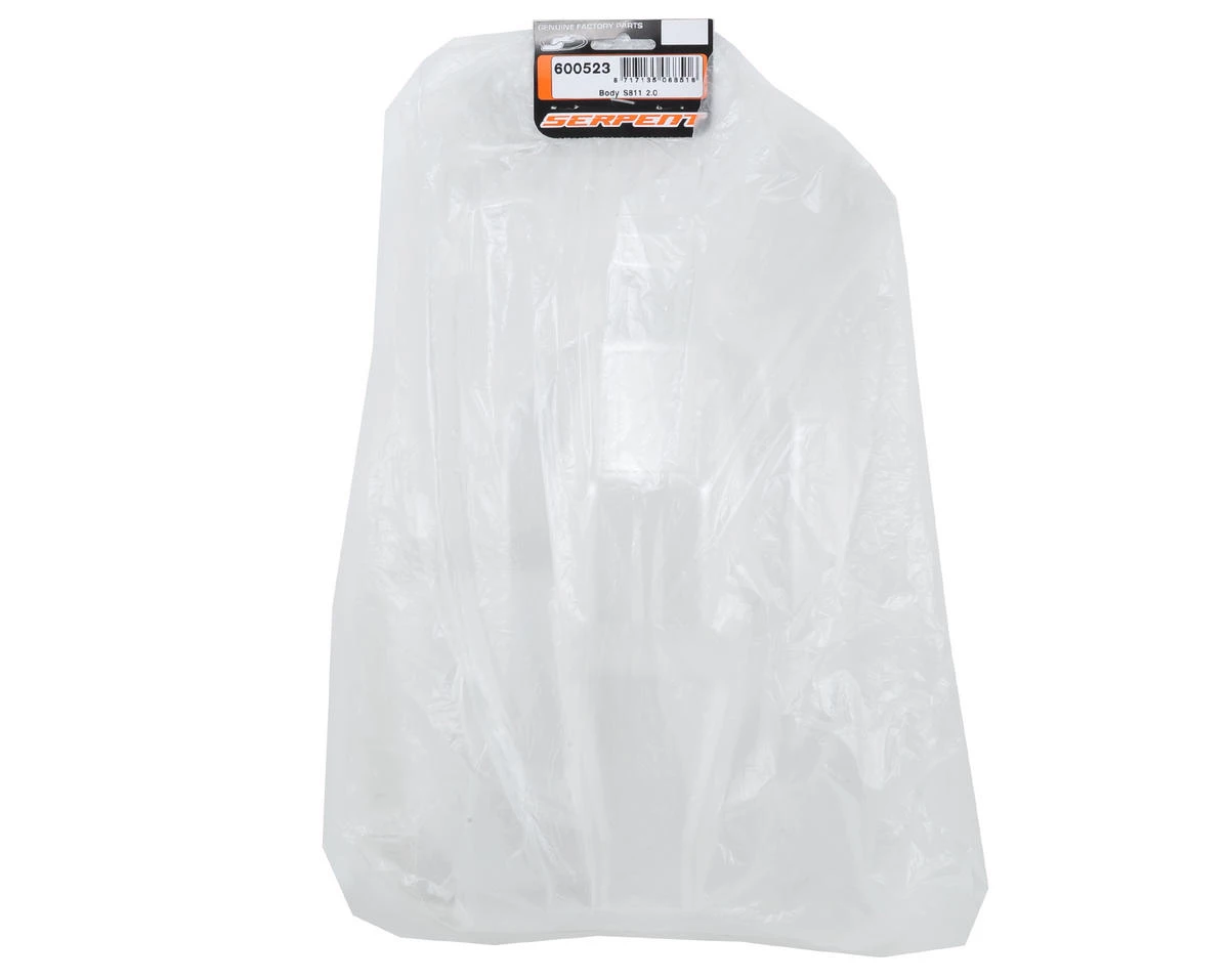 This is the Serpent Avenger 1/8 Buggy Body and is intended for use with the Serpent S811 Cobra. The Avenger body features a narrow cab forward design with a steep front window for improved steering, as well as increased in air and hard braking stability at high speed. Fins on the roof provide improved airflow, and the sidepods and rearend are not only incredibly aerodynamic, but also provide sufficient space for the steering and throttle servo linkage, as well as the exhaust. This body is formed from top quality 1mm polycarbonate and pre lined for easy cutout of the bodyposts, tank, cooling head and antenna.