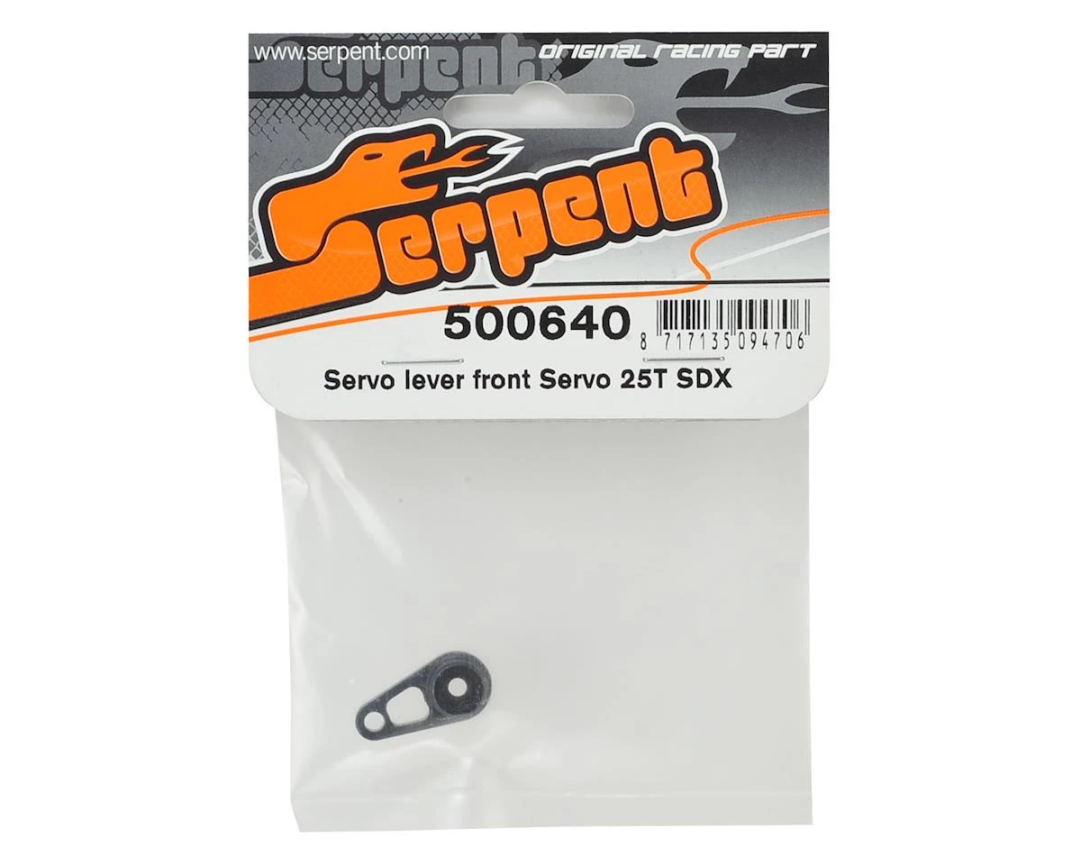 This is an optional Serpent SDX4 Aluminum Servo Arm. This servo arm is for use with any servo featuring a 25 Tooth servo spline; such as Futaba, Savox and ProTek R/C.
