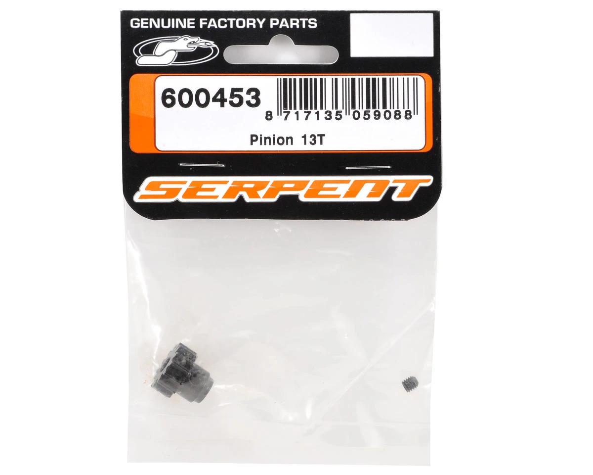 Serpent Steel Mod1 Pinion Gears are available in a variety of tooth count options to fine tune torque and top speed. These gears feature a mod1 tooth profile, a 5mm bore, and are recommended for Serpent 1/8 off road vehicles – but are a good option for a variety of applications. Package includes one pinion gear and one set screw.