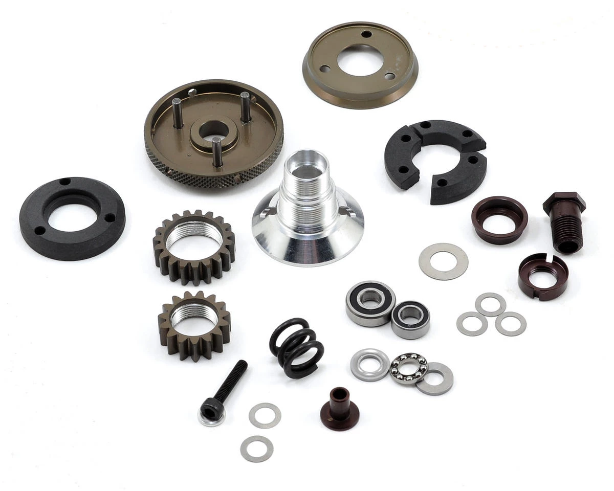 This is the Serpent True Motion 1/8 Centax Clutch Set, and is intended for use with the Serpent 960 and 966 vehicles. This clutch was developed by Ron Ton, the innovator of the centax clutch system in the mid 90’s, and it soon became the standard in on-road racing. In this version of the Serpent centax clutch, the tapered shape has been moved from the flywheel to the pressure plate, helping to improve punch and reliability. This clutch uses the hard centax spring to set the pre-load, and also uses the black shoe and aluminum clutch housing as standard parts.