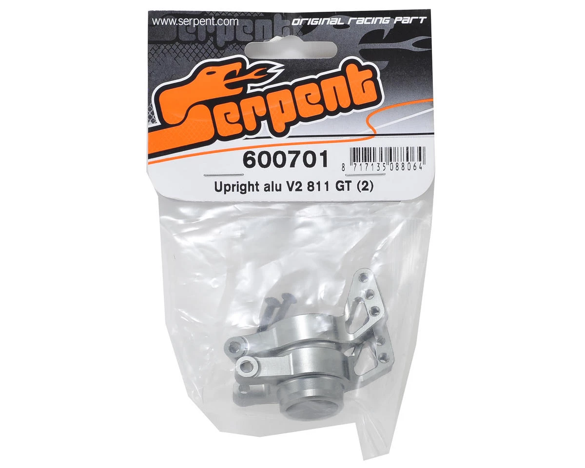 Serpent V2 811 GT Aluminum Upright. These are the updated V2 aluminum uprights. These rear hubs are precision machined from 7075 T6 aluminum to be stiff and durable.