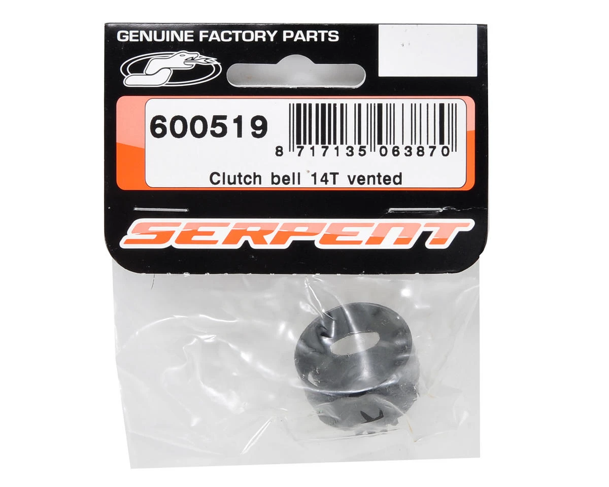 This is a Serpent 14 Tooth Vented Clutch Bell, and is intended for use with the Serpent 811 Cobra, Cobra TE and Cobra-T vehicles. This hardened steel clutchbell features ventilation/cooling pockets for improved performance, as well as a laser engraved Serpent Logo and tooth count.